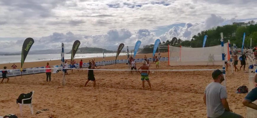 Typisch für diese Veranstaltung ist, das neben freiem Spielen, in Rotation immer 2 gegen 2 über Volleyballnetze um Punkte spielen.
